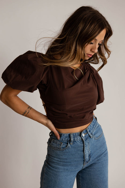 Coco Puff Sleeve Tie Crop